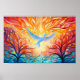 Celebrate the presence of the Holy Spirit with this vibrant Christian poster. A radiant dove, symbolizing peace and divine guidance, soars between two trees of life, surrounded by flowing flames and living water. This image is a reminder of God’s light, beauty, and power at work in our world.