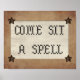 This Come Sit A Spell Poster is a digital art creation designed to look like vintage embroidery.