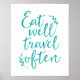 Póster Comer bien viajar a menudo tipografía cita azul po