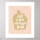 Este moderno y gráfico poster cuenta con una silueta de bizcocho y el dicho: La vida es corta, primero se come el postre.
