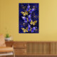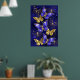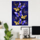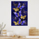Composición de lujosas mariposas de zafiro y joyas de oro sobre fondo de textura azul.