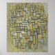 La composición en marrón y gris de Piet Mondrian es una pieza de cubismo abstracto vintage con una cuadrícula de formas rectangulares marrones y grises que reflejan la exploración de Mondrian del equilibrio y la armonía universales. AKA Gemälde no. II o Composición no. IX. Sobre el artista: Pieter Cornelis Mondriaan (Piet Mondrian) era un pintor holandés cuyo estilo característico se caracteriza por colores primarios enmarcados por gruesas líneas negras. Su trabajo es conocido por su innovadora mezcla de cubismo y modernismo, y por su enfoque en elementos artísticos básicos como líneas, cuadrados y colores primarios.