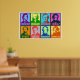 Los colores brillantes agregan un espíritu de arte pop moderno a estos retratos gráficos estilizados de compositores musicales famosos. Cada retrato está diseñado con dos colores intensos diferentes y tiene el nombre de los artistas colocado debajo en un tipo de letra negrita y limpia. Se presentan ocho compositores: Chopin, Bach, Wagner, Schubert, Tchaikovsky, Shostakovich, Mozart y Beethoven. ¡Captura de ojos, contemporánea y única!