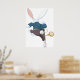 Un conejo blanco con la espalda volteada huyendo. Este diseño parece realmente efectivo en este Poster