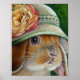 "Bunnies in Bonnets No. 5" Watercolor Art 11x14 Poster del artista Jean Weiner "Bunnies in Bonnets No. 5" (conejos en mallas no. 5) tiene un conejo adorable, marrón, orejón dorado con su cosecha favorita, capilla primaveral. Su gorra luce un lazo de moda y un rosa de color. Casi se puede ver su nariz estrellada y sus bigotes moverse, mientras ella se da cuenta del siguiente espectador. El carácter caprichoso de esta obra de arte alegra el día de los amantes del conejito.