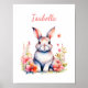 Póster Conejo personalizado en flores rosadas