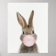 Póster Conejo soplando chicle rosa