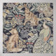 El tapiz forestal (detalle) de William Morris, 1887. El tapiz incluye un zorro, un cuervo, un león y un pavo real.
