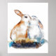 Póster con diseño de acuarela de conejos besándose. Perfecto para guarderías y habitaciones de niños