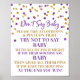 No digas poster de signos de juegos de bebé para una ducha de bebé con un patrón morado oscuro y confetti dorado. Tenga en cuenta que el efecto purpurina es sólo efecto fotográfico.