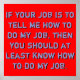 Si tu trabajo es decirme cómo hacer mi trabajo, entonces al menos deberías saber cómo hacer mi trabajo. Poster Rojo y azul