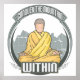 Meditar persona con fondo de montaña con texto de 'conquistar la montaña dentro'. ¡El yoga perfecto y el regalo de la conciencia!