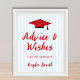Invite a sus huéspedes a compartir sus mejores consejos y sentidos deseos con este alegre cartel de Consejos y Deseos para el Grad, diseñado para coincidir con el tema de su fiesta de graduación de hierba de arrastre. Con un fondo azulado a rayas azul claro, un audaz tipo de letra rojo y una tapa de graduación dibujada a mano con un estilo de doodle juguetón, este cartel agrega personalidad y encanto a tu celebración de la Clase de 2025. Póngalo en pareja con las tarjetas de Consejos y Deseos de coordinación para una actividad de huésped cuidadosa y un placer que tu graduación apreciará durante años! Perfecto para mostrar en mesas de regalo, rincones de memoria o entradas. Disponible como poster impreso o descarga digital: ¡engrábelo para un look más pulido!