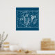 Gráfico de constelaciones de Francia vintage, conocido como "Hércules y Corona Borealis" - gráfico de estrellas blancas sobre fondo azul