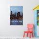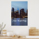 Poster colorido con el Empire State Building iluminado en azul y el Skyline de la ciudad de Nueva York al atardecer