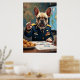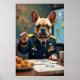 El teniente Lick no es solo lindo —está tomando las decisiones. Vestido con un uniforme del ejército prístino con medallas brillantes, este Bulldog francés está (er, se sienta) a cargo de una operación en el centro de mando. Con un puntero en forma de hueso dirigido a un mapa gigante, supervisa la logística de bocadillos y el despliegue de juguetes. Los gráficos están por todas partes, al igual que sus dulces. Su cara puede parecer seria, pero esa sonrisa dice lo contrario. Una combinación perfecta de disciplina, garabatos y una deliciosa estrategia.