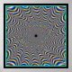 Ilusión óptica: Para los ojos sensibles no se necesita ninguna acción para ver el movimiento en esta imagen. Mirar esta imagen en el sentido de las agujas del reloj o en el sentido contrario a las agujas del reloj da la impresión de vibraciones pulsantes.