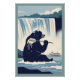 Cool Grizzly Bear Poster for anyone seeking a grizzly bear poster in the style of the 1930s WPA National Parks posters. This cool grizzly bear features a mega huge bear bathing in the waters below Niagara Falls, as a tourist boat passes close by. All in the classic WPA National Parks style.