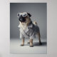 Póster Cool Pug in Retro Sunglasses and Light Grey Coat