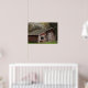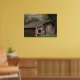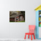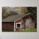 Esta pintoresca y elegante poster de arte se caracteriza por su ambiente rural, con una vieja gallinera de madera con tablero de madera roja templado y un barniz blanco alrededor de la ventana sobre un bonito césped verde y un árbol verde por detrás. El manzano con flores blancas y rosadas nos dice que es primavera.