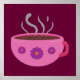 Este ilustracion caliente de café incluye una taza de café en una taza rosa bonito con flores moradas y naranjas. Este original diseño de arte cafetalero es el regalo perfecto para quien quiera bebidas calientes cafeteras como café, espresso, capuchino, café au lait o incluso un gran tazón de chocolate caliente.
