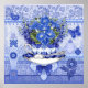 Una antigua taza de porcelana llena de flores azules y mariposas contra un fondo de encaje antiguo. Se ve genial como un par con Pájaros de Porcelana Azul y poster de la jaula.