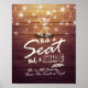 Letrero de boda Elige un asiento no un lado - Letra elegante, copas de champán vintage y luces de cuerda en fondo de madera rústica. Todo el estilo de texto, colores y tamaños se pueden modificar para adaptarse a tus necesidades.