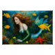 "Coralyn" - Hermosa Sirena Mística. Refugio subacuático reposado: Una hermosa sirena con una cola de pescado azul brillante descansa sobre el fondo marino en esta serena imagen estilizada de pre-Raphaelite. Su largo cabello rojo fluye como agua. El lugar se caracteriza por los vivos peces y corales, todos de tonos suaves y multicolores que realzan el ambiente relajante y encantador del mundo submarino.