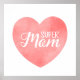 Diseño internacional del día de la madre, texto de supermamá con corazón rosado.