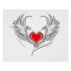 Corazón rojo pintado de forma artística con alas de ángel gris, decorado con un contorno suave negro.