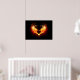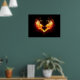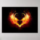 Ángel dispara el corazón con las alas flameantes sobre fondo negro.