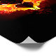 Ángel dispara el corazón con las alas flameantes sobre fondo negro.