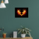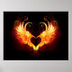 Ángel dispara el corazón con las alas flameantes sobre fondo negro.
