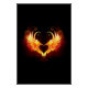 Ángel dispara el corazón con las alas flameantes sobre fondo negro.