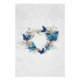 Corazón dorado, con flores morfo realistas azules y blancas. Morfo. Diseño con morfo de mariposas azules.