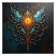 emblema de un dragón con un corazón central brillante, rodeado de ornamentos metálicos y piedras azules. Añade un toque de mística y nobleza a tu colección de arte.