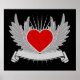 Ilustracion de corazón rojo con alas sobre fondo negro