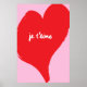 Póster Corazón rojo con je t’aime-text sobre fondo rosado