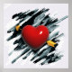 Póster Corazón rojo con pintura de fondo acuarela