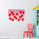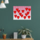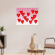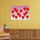 Los corazones rojos brillantes colgados de las cuerdas en un fondo rosado y blanco - ¡perfecto como un Poster Día de San Valentín!