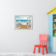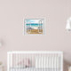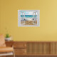 Romántica vista de la playa de arena, falsa escena de las ventanas, para una pared de una habitación sin ventanas. Divertido, realista poster óptico de ilusión para una oficina o pared de estudio.