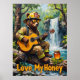 Esta encantadora pintura retrata a un oso vestido de bombero, con gafas de sol y casco, que tambalea una guitarra acústica mientras está encaramado en un tronco de setas cerca de una vibrante cascada. A su lado hay un frasco de miel de oro. El telón de fondo es un bosque exuberante con luz solar que se desliza a través de las hojas. Las gruesas pinceladas texturadas realzan la naturaleza caprichosa y dulce de la escena, con "Love My Honey" en un lugar destacado.
