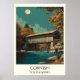 Step into history with this vintage style design of the Cornish Covered Bridge in New Hampshire. A picturesque scene of the historic bridge spanning a river, surrounded by colorful autumn trees.