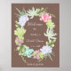 Invite a sus seres queridos a celebrar con nuestro impresionante letrero de bienvenida para despedida de soltera con corona de suculentas. Agrega un toque de encanto del desierto con un diseño que captura la belleza moderna de las botánicas del desierto, haciéndolo ideal para una despedida de soltera chic y memorable. La invitación presenta una hermosa corona de acuarela, meticulosamente elaborada con suculentas en una deliciosa variedad de tonos verde pálido, verde oscuro intenso y delicados tonos rosados. Estas suculentas vibrantes resaltan maravillosamente contra un suave fondo marrón, creando una paleta sofisticada y armoniosa. Ingrese fácilmente sus propios detalles y, si lo desea, puede editar aún más el estilo, tamaño, color y ubicación de la fuente. Si le gusta este letrero de bienvenida y le gustaría hacer algunos cambios específicos o solicitar un producto adicional que no esté en la colección, por favor cont