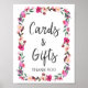 Este cartel de tarjetas y regalos con corona floral de cuento de hadas romántico es perfecto para una boda o ducha de novia con tema de jardín inglés. El diseño presenta rosas y peonías en acuarela en tonos rosa, melocotón y púrpura dispuestas en un delicado marco floral. La línea de texto en la parte inferior del cartel se puede personalizar con la fecha, los nombres de la novia y el novio, o un breve mensaje como "Gracias". Diseñado con cariño por Miriam en Fresh & Yummy Paperie. Para artículos coordinados, por favor visite mi tienda Zazzle: