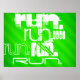Guay, white run, run, runner, marathon runner, motivador plantilla de patrón de texto en nube de palabras sobre fondo brillante de rayas verdes neón lime! Un gran regalo para los niños, adolescentes, adolescentes o adultos; ¡niño o chica! Diseño moderno y bonito con diferentes tipos de letra en blanco y gris.