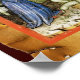 Antigua miniatura medieval italiana de la cosecha de calabazas finales de 1390..Escena rural clásica con hojas verdes y calabazas..Parte de " Frutas de las estaciones ".Este diseño clásico con efectos de pergamino marrón envejecido es perfecto para nutricionistas,dietistas,catering,servicio de comida,preparación o restaurante ,industrias de catering.