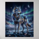 Póster Cosmic Wolf Under Aurora Sky