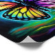 This vibrant poster features a neon butterfly with rainbow-hued, intricate wings and glowing blue aura, set against a dark, cosmic backdrop with soft colorful clouds. Finished in an acrylic oil paint print.