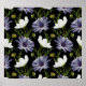 Colorido estampado floral sin costuras con cosmos blancos y collage de flores de margarita azul sobre fondo negro. Ilustracion bursátil. Infunde tu mundo con el encanto del cosmos blanco y las margaritas azules. Florecimiento de cosmos y daisies, un cuento de collage floral. patrón, flor, primavera, fondo, abstracto, textura, decoración, verano, moda, naturaleza, vintage, dibujado a mano, ilustracion, blanco, floral, negro, sin costura, azul, planta, tela